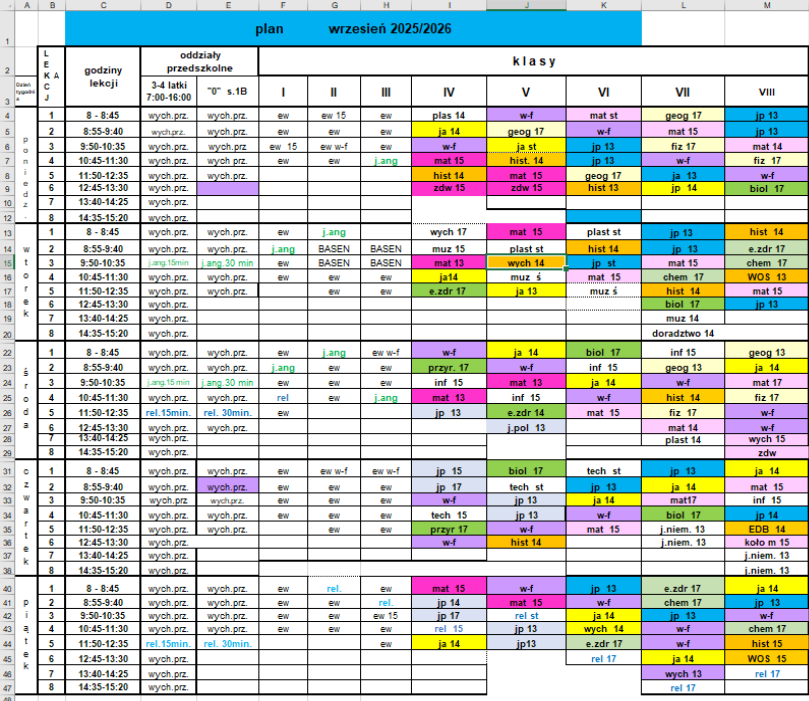 Plan lekcji obowiązuje od 01.09.2025 r.