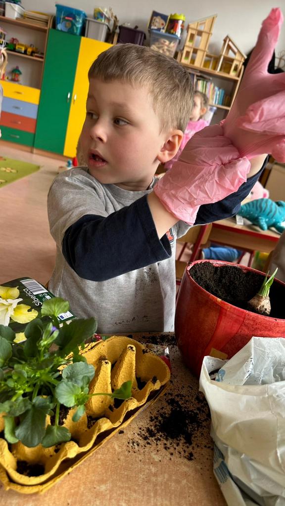 Sadzenie kwiatów w przedszkolu